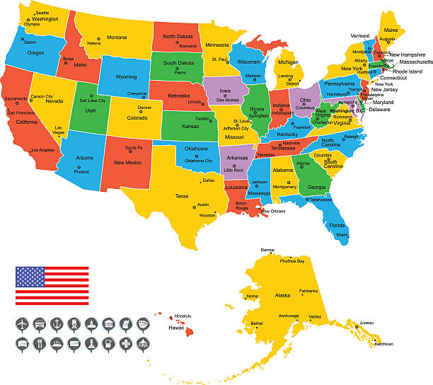 Detalhada Vetor Mapa Dos Eua Arte vetorial de stock e mais